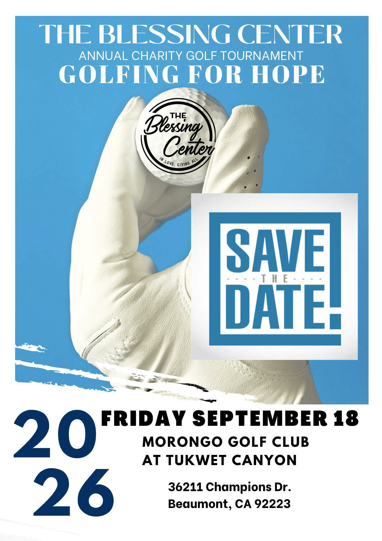 Join us for this years' 16th Annual "Golfing for Hope" Charity Tournament Event at the beautiful Morongo Golf club at Tukwet Canyon! Mark your calendar, invite your friends and get ready for a really fun-tabulous time Friday, September 18th!